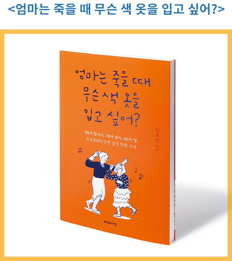 입 밖으로 꺼내는 것만으로도 불손, 불효가 되는 것 같은 기분이 들게 되는 제목이다. 하지만 저자는 치매에 걸린 할머니를 간병하는 엄마와 자연스럽고 편안하게 죽음에 대한 생각을 나눈다. 상상만으로도 우울하고 슬프기만 할 것 같은 엄마의 노년과 죽음에 대한 이야기가 유쾌하게 흘러갈 수도 있다는 걸 보여준다. 여기에 저자는 자신의 삶의 끝도 생각할 수 있는 기회가 됐다고 말한다. 죽음은 누구에게나 말하기 불편하고 어려운 주제지만, 그만큼 삶에 중요한 문제기도 하다. 또한 죽음은 삶의 끝이 아니라 연장선상에 있다. 그래서 엄마가 일방적으로 당하는 죽음이 아니라 맞이하는 죽음을 준비하고 싶어 한다는 것에 고개를 끄덕이게 된다.