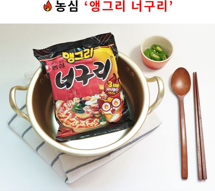 한 입 먹고 ‘에계?’라고 할 수도 있지만, 3배나 사나워진 너구리를 섣불리 판단했다간 큰 코 다친다. 조금 지난 후에 찾아오는 강렬한 매운 맛 때문에 라면을 다 먹고 난 후에도 불을 내뿜을 것 같은 화끈함을 맛볼 수 있다. 진짜 매운 맛 좀 보고 싶다면 국물부터 시원하게 들이켜보자. 얼큰함에 취해 쥐도 새도 모르게 한 그릇을 비울 테니까.