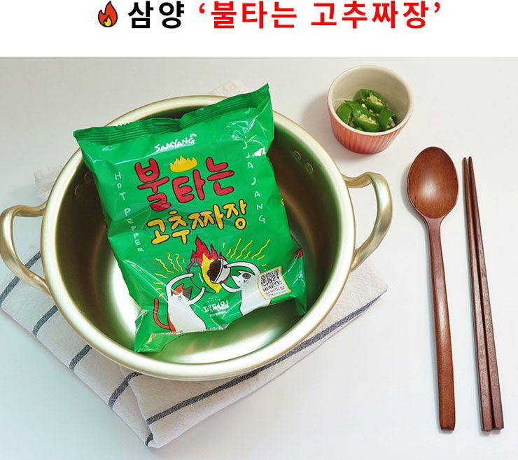 지금까지 이렇게 맵싸한 짜장은 없었다. 아니, 정확히 말하면 깔끔하게 맵싸한 짜장이랄까? 안그래도 매운 짜장 소스에 청양고추 후레이크와 고추기름까지 더해져 입안을 얼얼하게 만들 정도로 칼칼하고 매콤한 맛을 선사한다. 짜장이 아닌 또 다른 메뉴도 맛보고 싶다면 ‘불타는 시리즈’로 함께 출시된 ‘불타는 고추짬뽕’과 ‘불타는 고추비빔면’도 시도해보자.