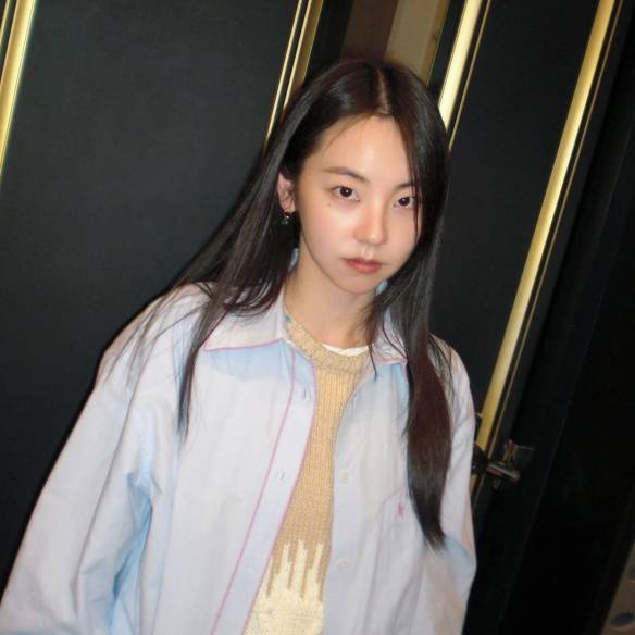 염색은 싫다! 탈색 컬러를 살려 대비를 주고 싶다면 카드의 전지우 스타일이 대안이 될 수 있다. 전지우는 제니처럼 앞머리에 강한 탈색을 넣은 후 뒷부분 모발에도 군데군데 브릿지 탈색을 추가해 전체 스타일에 통일감을 주었다. 탈색한 부분이 많아졌지만 제니에 비해 훨씬 웨어러블한 느낌.
