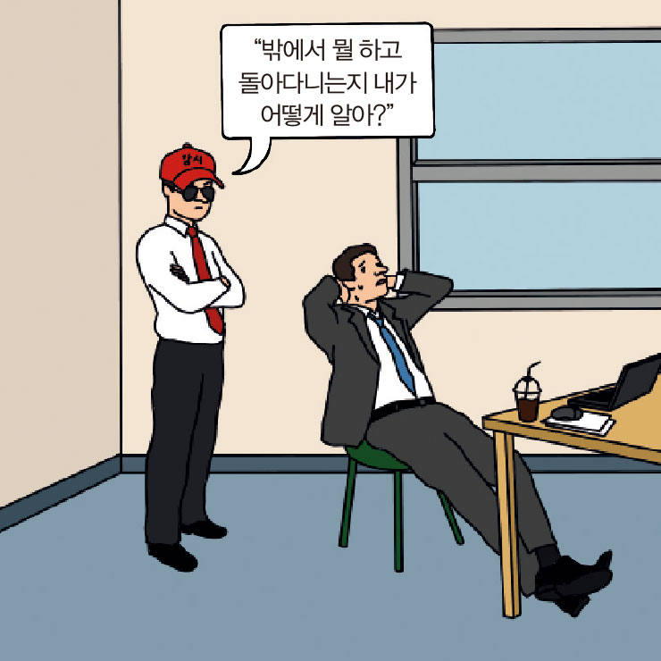 잡념이 많고 엉뚱한 생각을 많이 하는 INFJ형. 이런 유형이 상사가 되면 피곤해진다. 부하 직원이 밥을 먹다 아이디어를 내면 ‘어 그래 그거 좋다. 한번 진행해봐’라며 업무를 슬쩍 맡기기 때문. 잘못을 지적할 때도 마찬가지다. 상대방이 기분 나쁘지 않게 겉으론 웃으며 완곡하게 이야기하지만 나중에 생각해보면 더 기분 나쁜 ‘빙그레 X년’ 스킬을 자연스럽게 활용하는 새로운 유형의 꼰대.