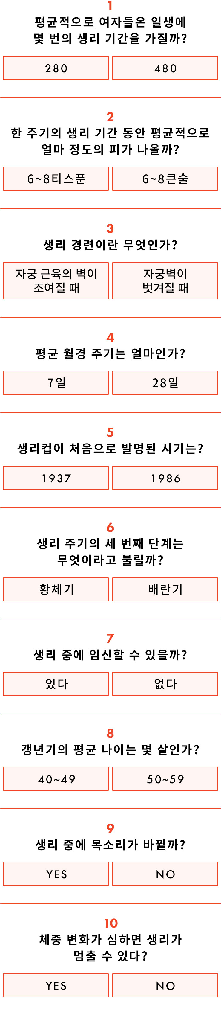 반평생 함께하는 생리에 대해 퀴즈로 알아보자!