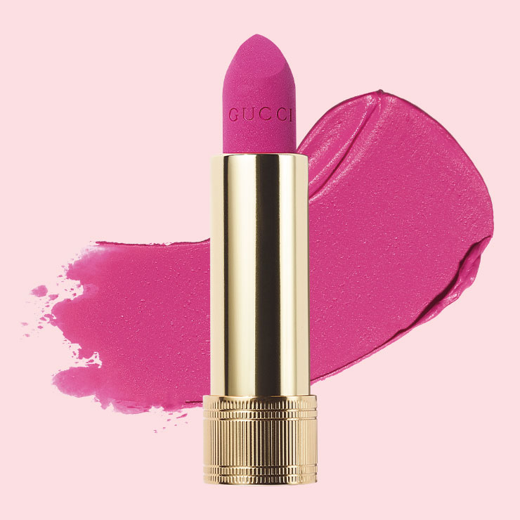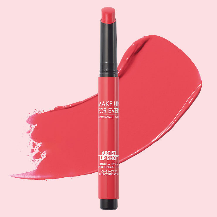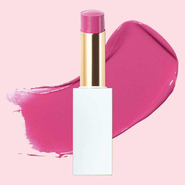 입술 곡선에 맞춰 사선 스퀘어로 디자인된 고발색·고밀착 립스틱.