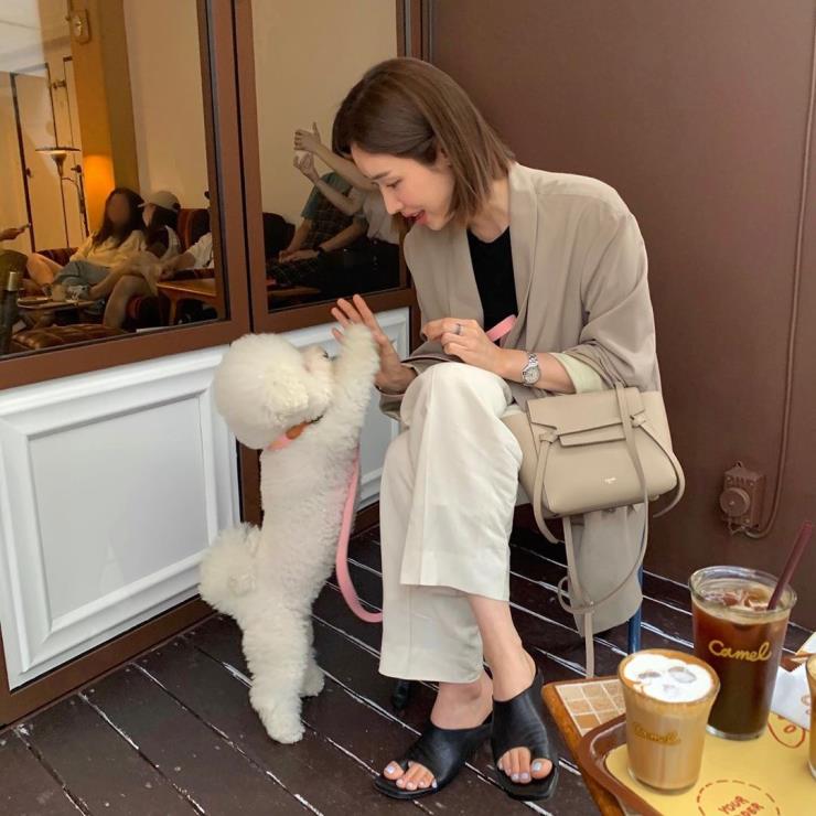 베이지 컬러가 소희의 부드러운 느낌과 잘 어울려. 깔끔한 룩을 즐기는 소희답게 유행 타지 않는 클래식 디자인을 골랐어.