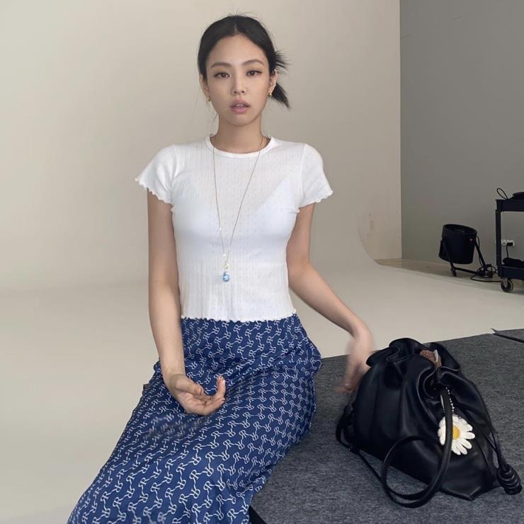 베이직하면서 활용도가 높은 로에베 플라멩코 백. 제니는 꽃 모양 참 장식을 달아 포인트를 줬어. 밋밋한 가방이 있다면 제니처럼 참 장식을 이용해 포인트를 줘 보는 것도 좋겠어.