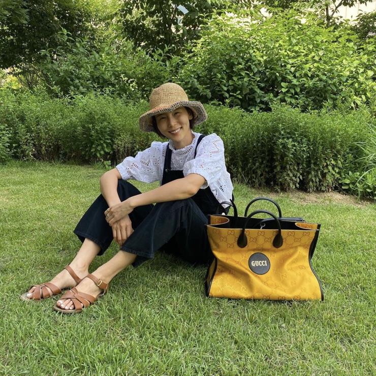 김나영(@nayoungkeem)의 선택은 구찌의 옐로 컬러 토트백. 빈티지한 옐로 컬러가 멋스러워. 큼지막한 크기 덕에 소지품 잔뜩 넣고 피크닉 가고