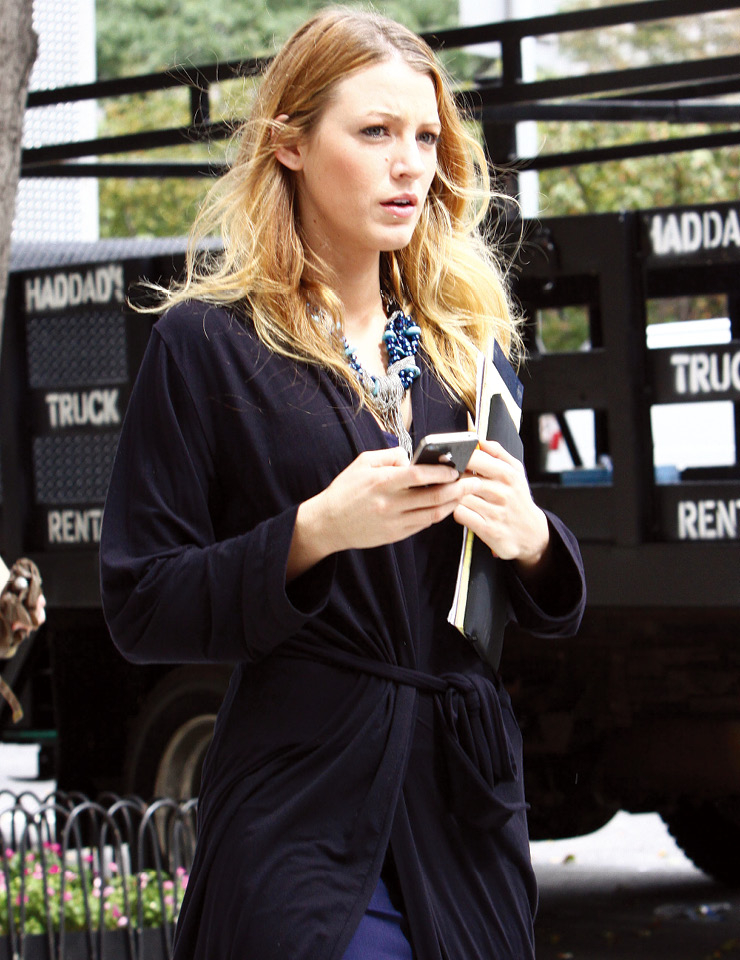 어떤 아이템도 패션으로 만드는 블레이크 라이블리. 일교차가 큰 날씨에 가볍게 로브를 걸쳤다. 컬러 톤을 맞춘 룩, 큼직한 액세서리로 모던함을 더했다. Blake Lively