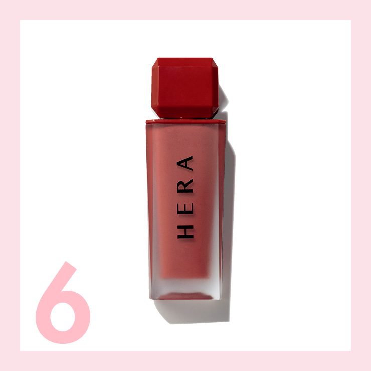 강렬한 컬러감의 리퀴드 틴트. 웜 톤의 붉은 벽돌색이 안색을 화사하게 밝힌다.
