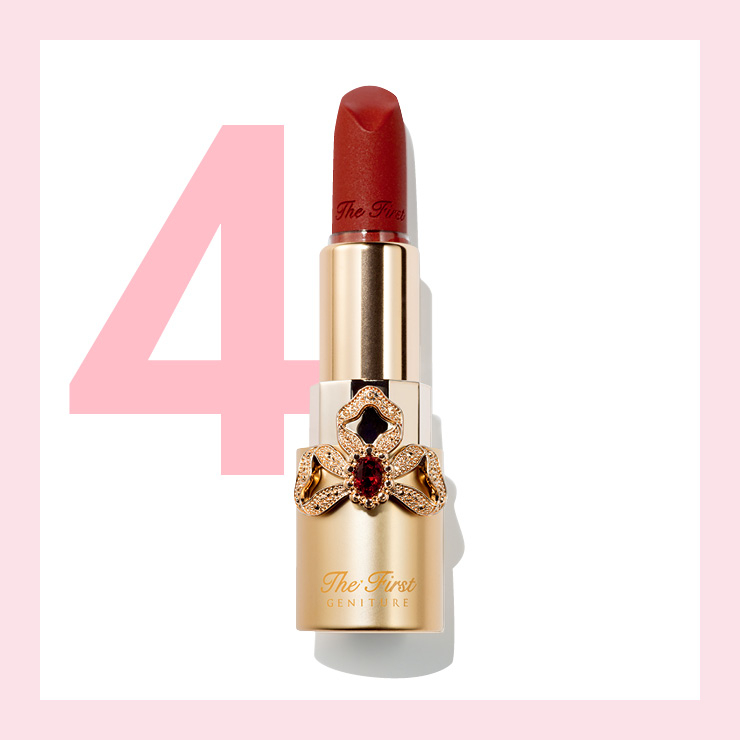 붉은빛이 감도는 우아한 색감으로 발린다. 선명한 톤과 매트한 새틴 피니시를 동시에 갖췄다.