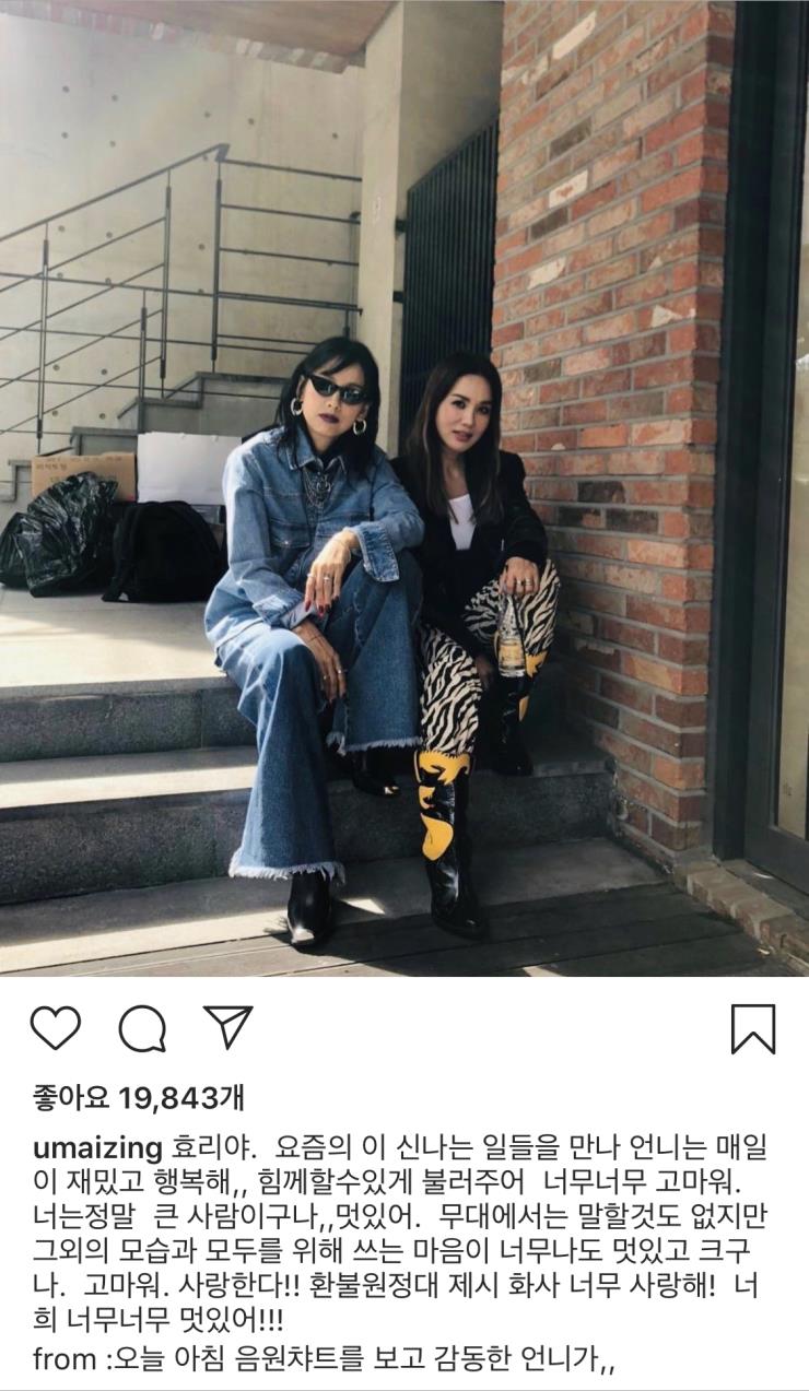 엄정화는 인스타그램을 통해 “오늘 아침 음원차트를 보고 감동했다”며 이효리에게 공개 감사 메시지를 남기기도 했다.
