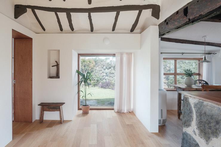 따뜻한 마룻바닥에 배 깔고 감귤을 먹으며 만화책 보는 로망을 지니고 있다면 이곳으로 향하자. 제주 동쪽에 위치한 쉴틈은 지난 5월, 제주 고유의 분위기를 간직한 옛집에 감성을 한 스푼 더해 새롭게 재탄생한 스테이다. 가족 숙소인 안거리와 커플 맞춤 숙소인 밖거리로 나뉘어 운영 중이다. 온돌방은 안거리에 위치해 있으니 예약 시 참고하도록 하자.