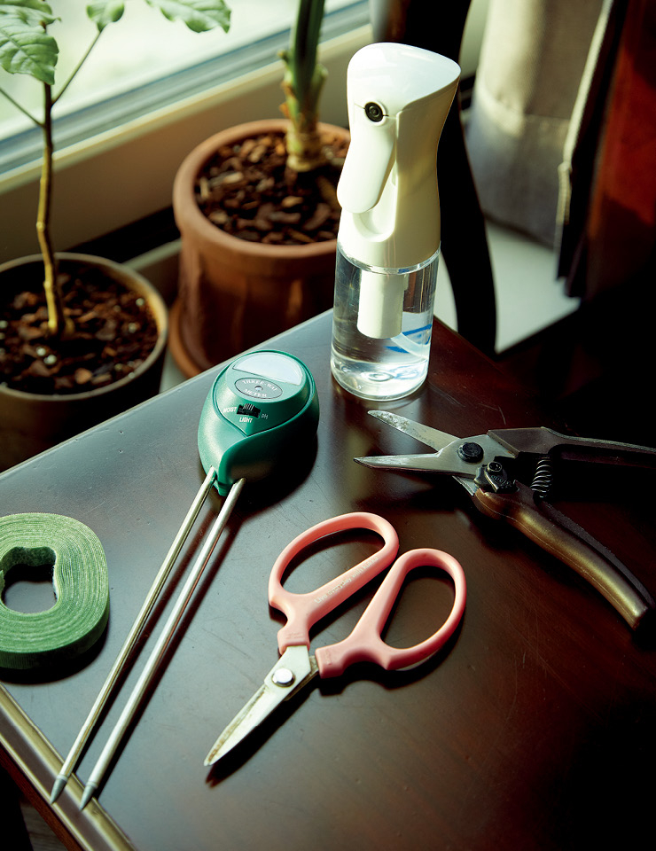 식물 생활자의 하루 일과가 궁금해요. 아침엔 보통 흙이 얼마나 말랐나 만져봐요. 집이 서향이라 오후 3시 무렵부터 해가 잘 드는데, 그때 식물을 하나하나 관찰하는 걸 너무 좋아해요. 잎맥이 어떻게 생겼는지, 빛이 들 땐 어떤 모습인지, 잘 자라고 있는지, 해충이나 시든 덴 없는지. 물은 주로 밤에 주는데, 베란다가 아니다 보니 하나하나 다 욕실로 옮기는 수고가 필요해요. 여유롭게 하면 1~2시간 정도 걸리죠. 좋아하는 일이라 즐기면서 해요.