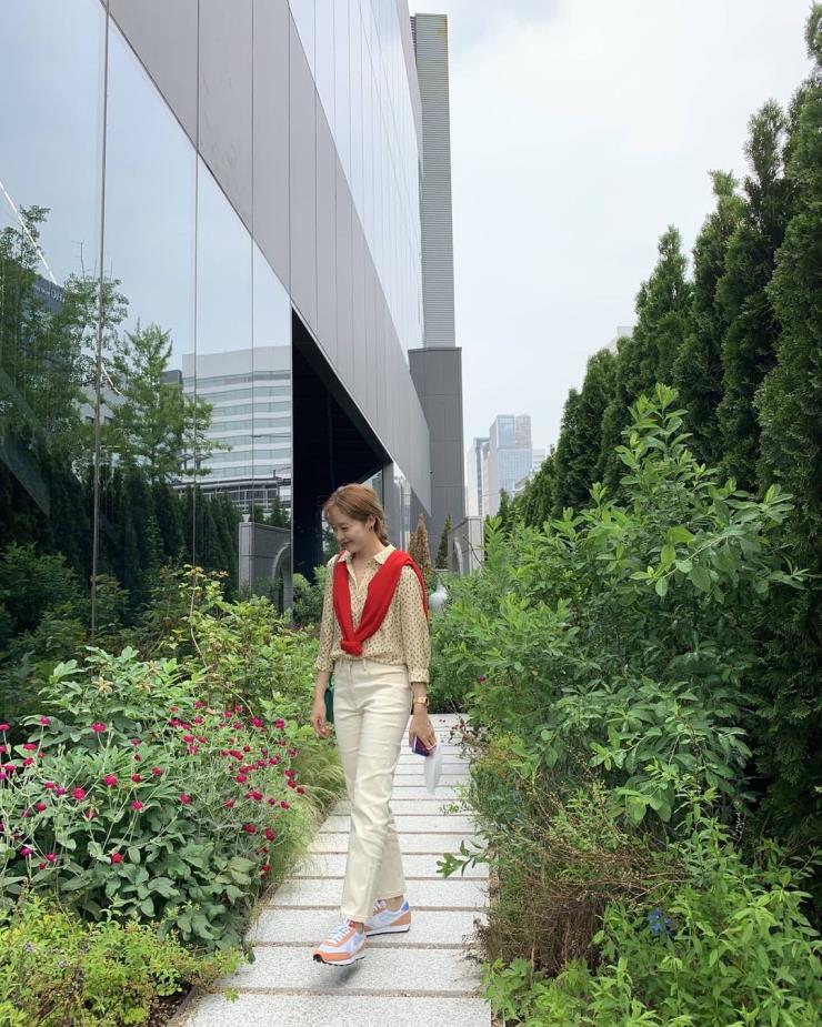 인기가 계속되고 있는 나이키의 데이브레이크. 성유리는 따듯한 웜톤 계열로 스타일링 했어. 어깨에 걸친 레드 컬러 카디건 좀 봐. 너무 사랑스러워.
