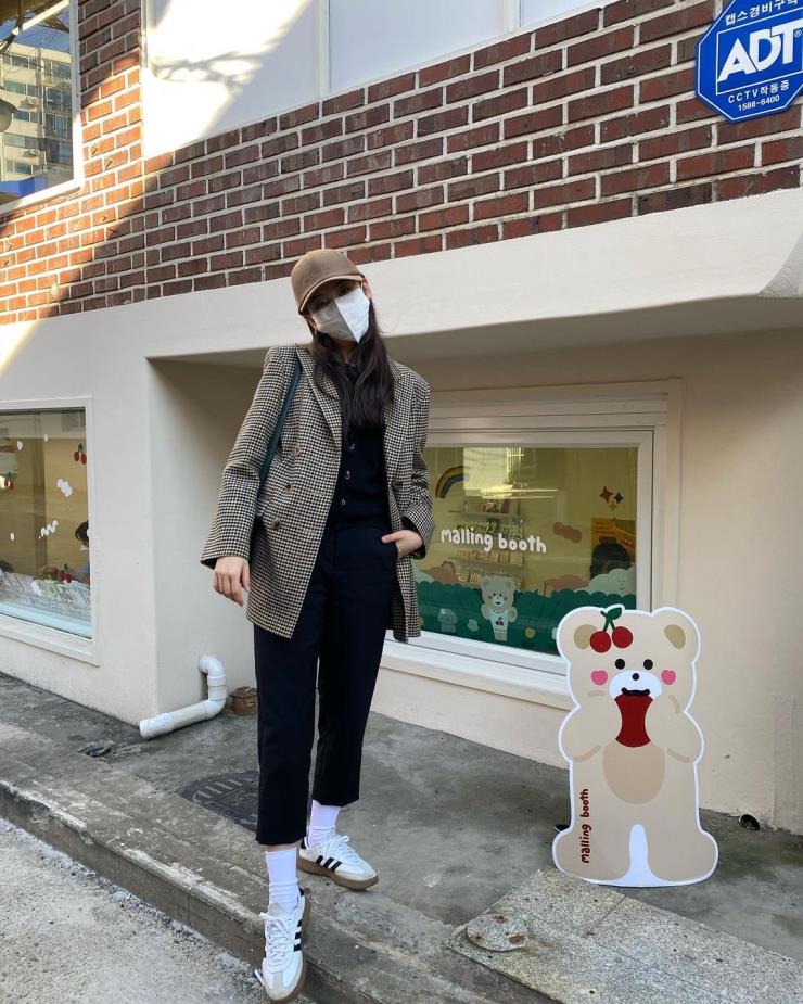 아디다스의 클래식한 스니커즈를 신은 소희. 흰 스니커즈 안에 흰 양말을 매치해 귀엽고 캐주얼한 스타일링을 했어.