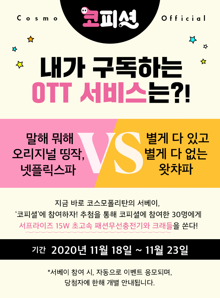 내가 구독하고 있는 OTT 서비스는?! 한번 빠지면 헤어 나올 수 없다는 오리지널 띵작을 모아놓은 넷플릭스 파! VS 네가 왜 거기서 나와?! 별게 다 있고 별게 다 없는 왓챠 파!