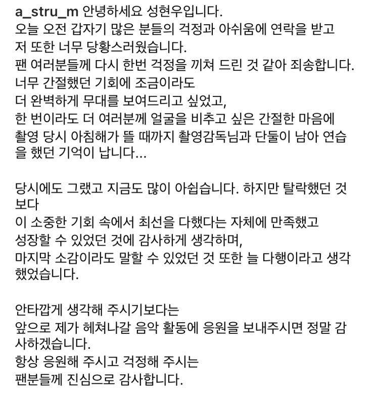 시즌 2 1차 투표에서 조작 피해를 입은 성현우는 자신의 인스타그램에 장문의 심경 글을 남겼다.