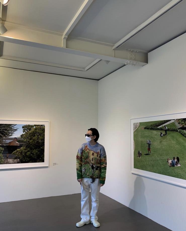 류준열의 원조 찐친 이동휘가 빠질 수 없다. 화려한 페인팅이 수놓아진 니트를 매치한 찰떡 전시회룩으로 등장했다.