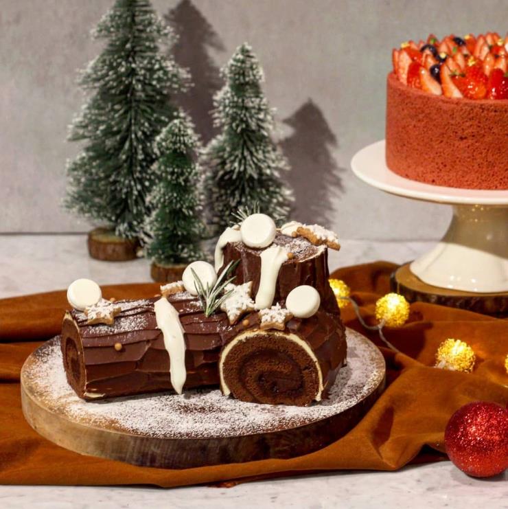 벽난로 불을 지피던 장작을 표현한 ‘부쉬 드 노엘’을 판매하는 노보텔 앰버서더 동대문. 진한 초콜릿의 풍미를 느낄 수 있다. 이외에도 얼그레이 쉬폰, 핑크 스트로베리 총 3종류의 크리스마스 케익을 판매한다. 부쉬 드 노엘은 4만 원대.