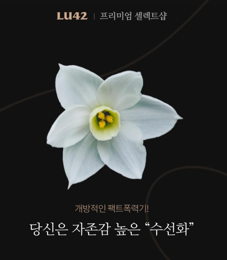 멀티 브랜드 숍 LU42에서 만든 것으로 성격 유형 검사인 MBTI를 기반으로 하고 있다. 다른 테스트와 차별화된 점이 있다면 테스트 결과를 다른 사람에게 링크로 공유할 때마다 코로나19로 힘든 시간을 보내고 있는 의료진들에게 100원씩 후원이 이루어진다는 점. 기부도 되고 재미도 찾는 의미 있는 심리 테스트다. 꽃 MBTI 테스트