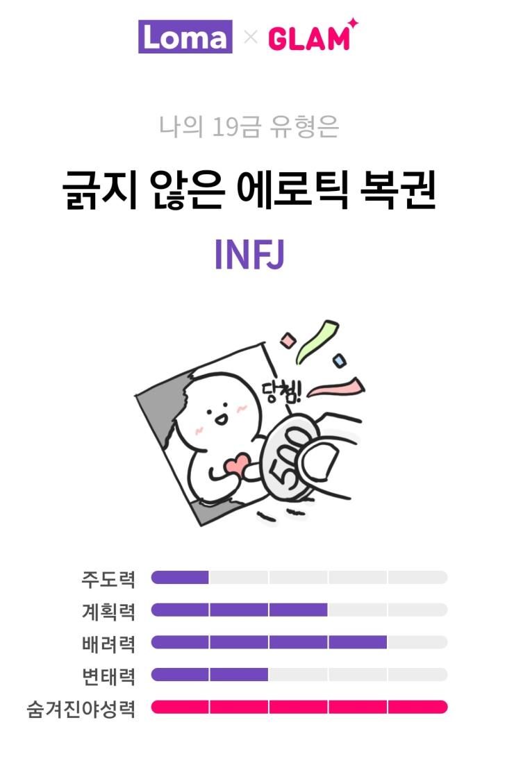 연애 능력치 테스트로 대박을 쳤던 ‘글램’ 이 반려 토이 브랜드 Loma와 함께 나의 숨겨진 19금 능력을 알아보는 테스트를 만들어 냈다. 연인과 함께 테스트하며 나는 침대에서 어떤 유형인지, 상대방은 무엇을 더 선호하는지 알아보면 좋을 듯. 서로 몰랐던 의외의 모습을 발견하고 지루했던 섹스 라이프에 불을 지피는 불쏘시개가 되어 줄지 모를 일이다. 19금 능력치 테스트