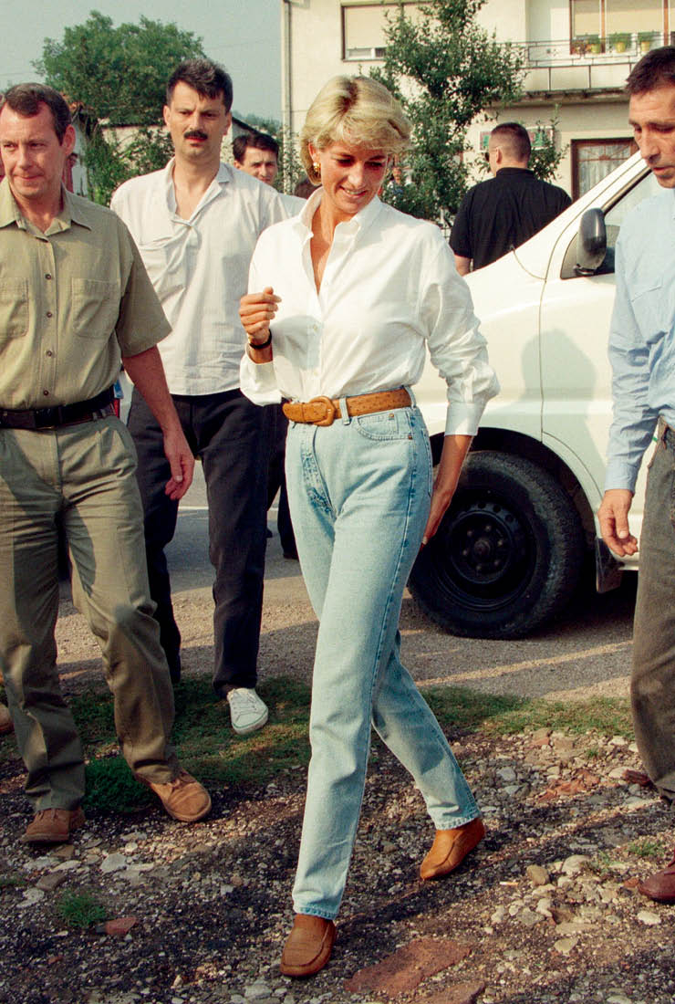 이혼 후 다양한 사회활동을 하면서 보다 활동적인 스타일로 변신한 다이애나. 특히 발목까지 오는 팬츠에 로퍼를 자주 착용했고, 여기에 벨트를 매치해 격식 있는 분위기를 연출했다. 심플한 룩이야말로 유행을 뛰어넘는다는 것을 보여주는 좋은 예! Casual Chic