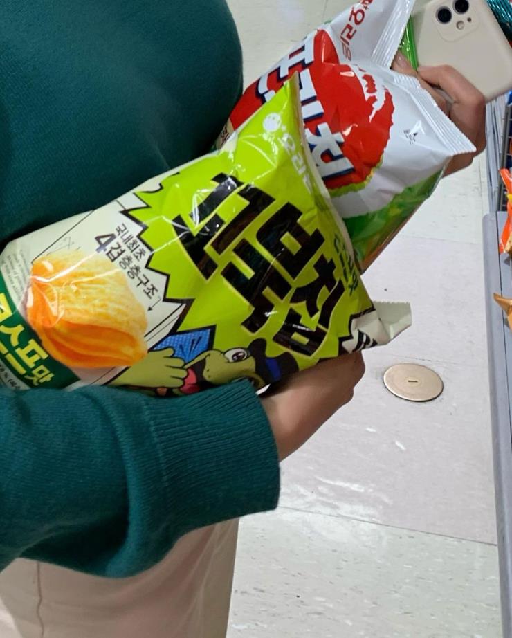마트에서 효민이 고른 과자는 꼬북칩. 기본에 충실한 콘스프 맛을 골랐다. 4겹의 바삭한 질감과 중독성 있는 콘스프 시즈닝으로 이미 대란을 낸 과자. 특히 초콜릿 시나몬 꼬북칩은 ‘제2의 허니버터칩’이라고 불릴 정도로 구하기 힘든 레어템.