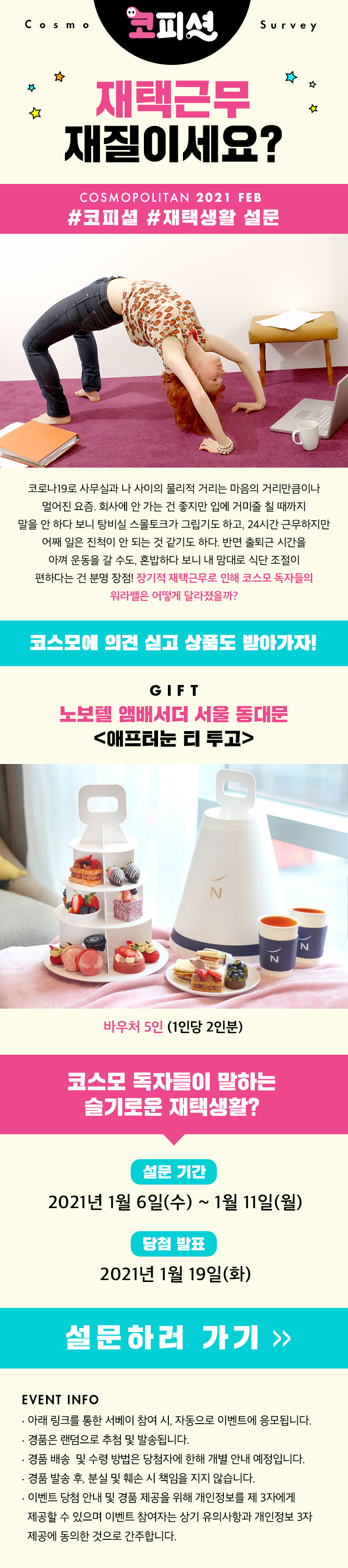 회사와 나 사이의 마음의 거리 두기. 재택 근무 시행 이후 당신의 워라밸은 좋아졌는지 체크해보자. 온라인 수업을 전환한 대학생들도 드루와.