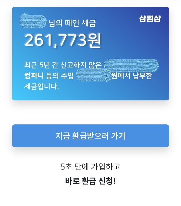 삼쩜삼 서비스에서 묵힌 돈 돌려받을 지도!