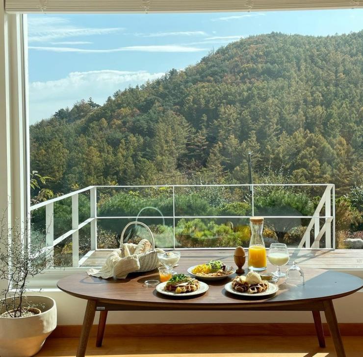 푸드 스타일리스트의 스튜디오이자 스테이로 운영되는 곳. 숲속에 있는 예쁜 주방에서 사랑하는 사람들과 맛있는 한 끼 식사를 나눌 수 있는 공간을 만들고 싶다는 생각에서 별장을 오픈하게 되었다고 한다. 통창 가득한 햇살, 실제 푸드 스타일링에 사용되는 앤티크 가구와 예쁜 커트러리가 마련되어 있어서 음식을 담고 찍기만 해도 그림이 되는 경험을 할 수 있다. 사장님이 준비해 주신 미니 크루아상 생지로 크로플을 만들 수 있다고 하니 맛있게 조식을 즐겨 보도록 하자.