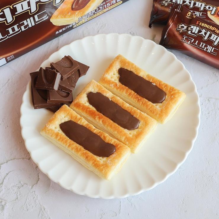 해태에서 잼이 아닌 달달한 초콜릿을 얹은 후렌치파이가 나왔다는 사실, 다들 알고 있나? 64겹의 촉촉한 파이 위에 달콤한 초코 크림이 한가득 올라간 이 과자는 먹어본 사람들 사이에서 이미 맛있다는 간증이 쏟아지고 있다고! 아무래도 초코가 듬뿍 얹어진 과자이다 보니 온도에 의해 초코가 녹을 수 있으니 이를 유의해서 차갑게 먹으면 더욱 맛있게 먹을 수 있을 듯. #후렌치파이 초코스프레드