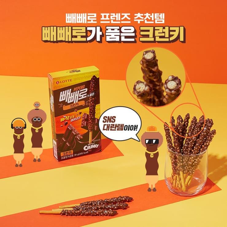 바삭바삭한 크런키를 사랑하는 사람이라면 롯데에서 작년에 출시한 ‘크린키 빼빼로’를 꼭 먹어 보시길. 이 제품은 롯데제과의 스테디셀러인 ‘빼빼로’에 ‘뻥쌀’을 입혀 크런키의 식감을 제대로 살린 제품으로 달달한 초코맛과 크런키 특유의 고소한 맛을 동시에 느낄 수 있다. 출시 이후 6개월 동안 150억 원의 매출을 기록할 만큼 역대급 인기 상품이었다고 한다. #크런키 빼빼로