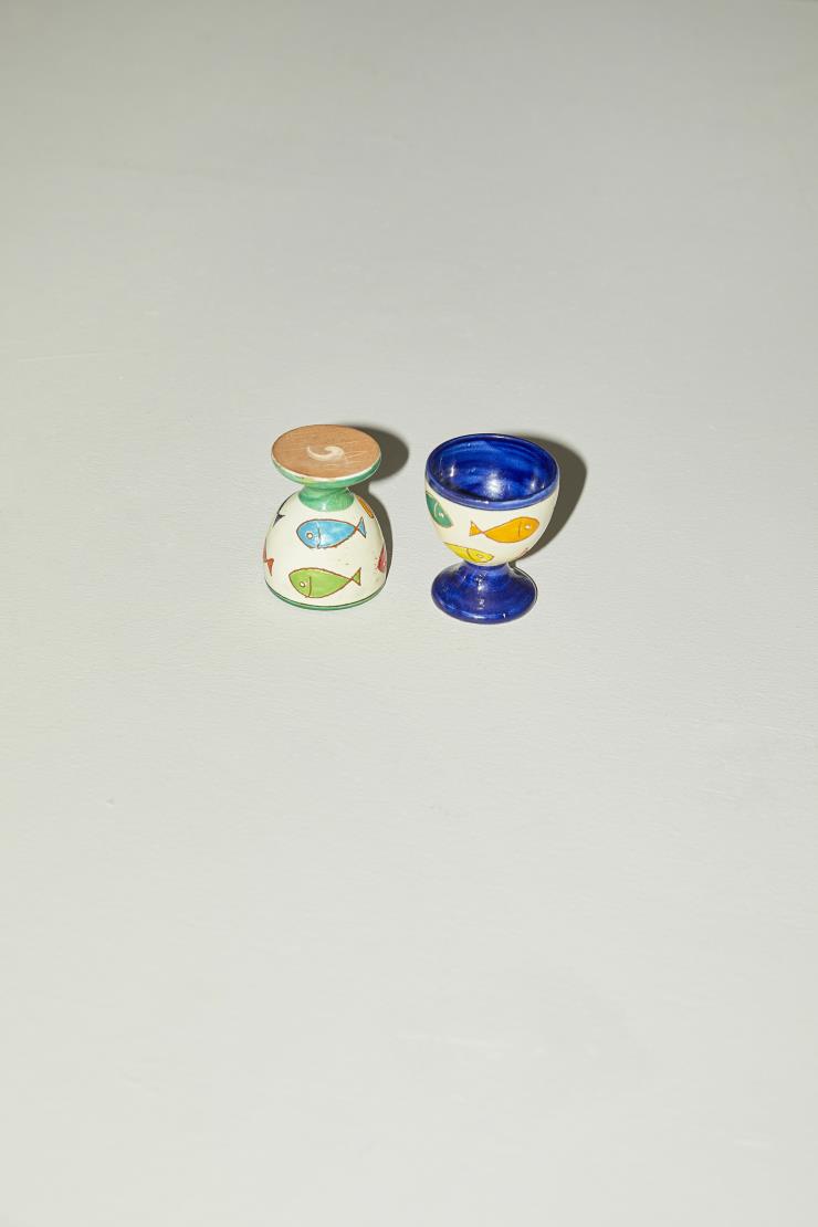 아기자기한 그림에 화려한 색을 담아 내는 스페인 타일을 닮았다. 형형색색의 물고기들이 음각이 되어 있고, 에그 컵 받침과 안쪽에 색이 칠해져 있다. 이 에그 컵은 스페인 서쪽에 위치한 도시 엑스트레마두라의 작은 그릇 가게에서 구입한 것이다. 색을 칠한 붓의 흔적이 하나하나 눈에 잡히고 물고기 모양도 참 엉성한데, 그런 빈틈이 주는 나른함이 있다. 덩달아 느슨해지는 느낌. 그래서일까? 오후만 있는 주말 첫 끼에 잘 어울리는 에그 컵이다.