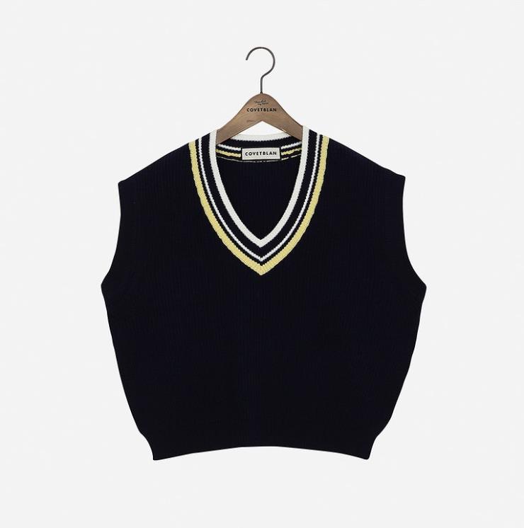 보자마자 저장을 누르게 하는 로제의 니트 베스트 스타일링. 국내 브랜드 ‘코벳 블랑’ 제품으로 9만 원대이다. 로제가 착용했던 제품은 더 이상 구매할 수 없는 게 아쉽지만, 같은 디자인에 다른 컬러는 구매 가능하다.