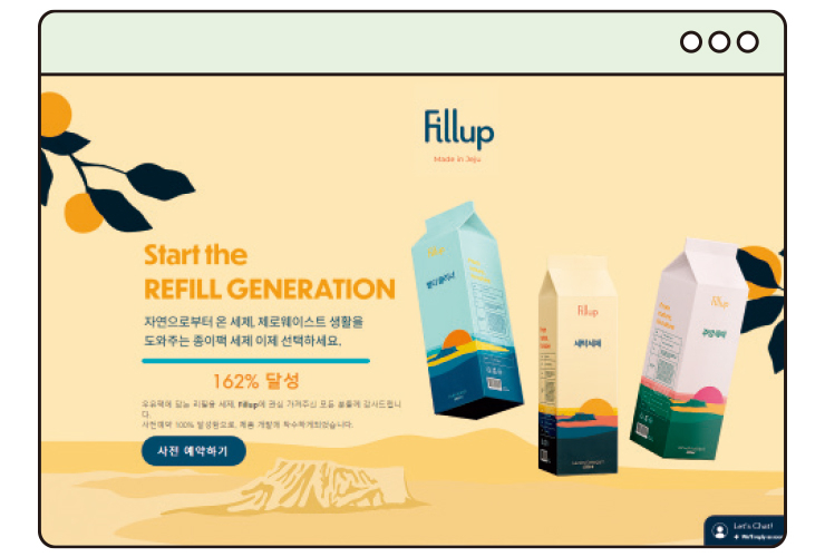 필업은 플라스틱 용기의 대안으로 우유팩에 세제를 담았다. 재사용 가능 용기에 우유팩 세제를 리필해 쓸 수 있도록 정기 배달 서비스를 제공하는데, 이 우유팩은 100% 재활용이 가능하다.