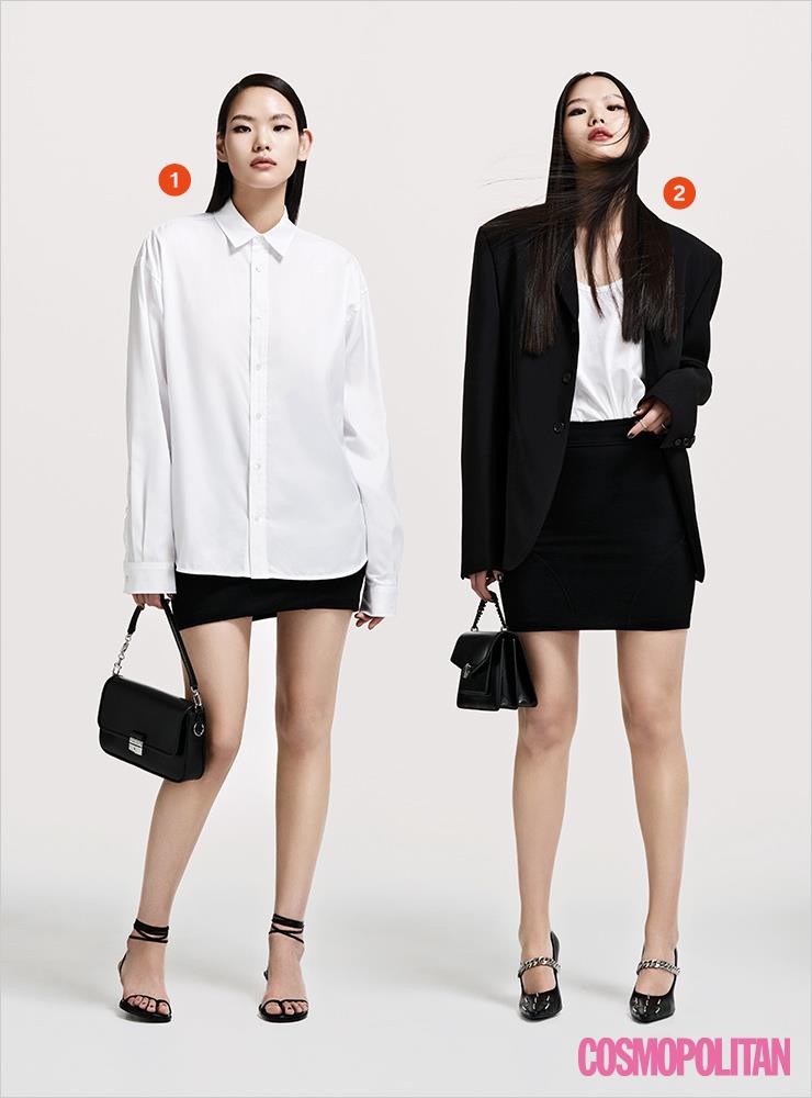 울트라 미니스커트에는 오버사이즈 실루엣의 박시한 상의를 매치하는 것이 룩의 밸런스를 조절할 수 있는 현명한 방법이다. 그중 클린한 화이트 셔츠는 최고의 아이템!
