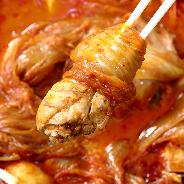 강원도 원주의 맛집, 민병선 식당의 닭볶음탕이다. 처음 이름을 들으면 닭볶음탕에 묵은지를 넣는다는 게 잘 상상이 잘 안되지만 먹어보면 감탄하게 된다고. 2020 월드푸드챔피언 요리 대회에서 금상을 받은 메뉴로 지난 1월 와디즈 펀딩 때 엄청난 인기를 얻어 따로 판매하게 되었다. 무게가 약 1.3kg인 큼직한 닭을 사용해 풍성한 양을 자랑하는 것이 특징. 닭, 양념 육수, 감자를 냄비에 넣고 강불로 끓여낸 뒤, 해남, 진도 월동 배추로 만든 묵은지를 넣고 쭉쭉 찢어 먹으면 끝! 마지막에 라면사리를 넣어 후루룩 면치기를 하면 세상 그 무엇도 부럽지 않을 듯하다. 가격 2만 9500원.
