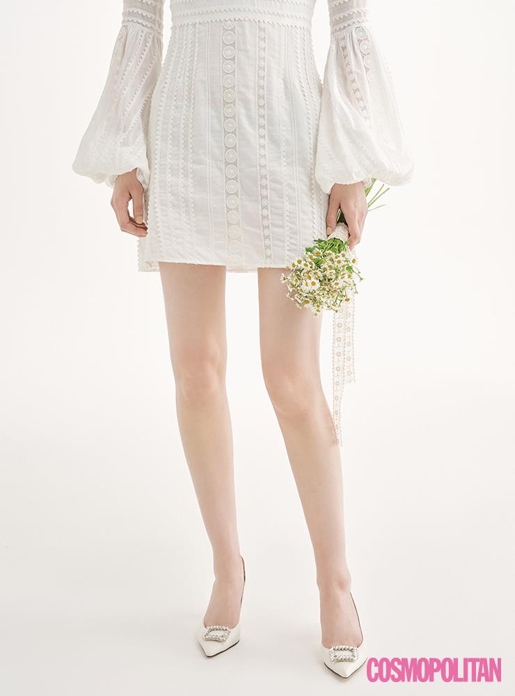 화이트 드레스의 아름다움을 더욱 돋보이게 해주는 화이트 컬러의 웨딩 슈즈.