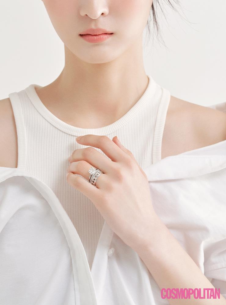 평생 끼는 웨딩 링은 단순한 디자인이어야 질리지 않으며, 다양한 레이어링을 더할 수 있다. The Ring