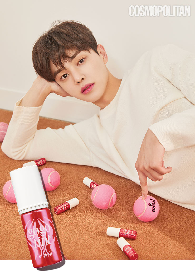 송강의 장꾸 모멘트를 빛나게 해준 채도 높은 체리색 입술. 깨끗하고 보송보송한 피부를 연출한 뒤 입술 위에 착붙되는 어플리케이터로 고고틴트를 입술 안쪽부터 좌우로 미끄러뜨리며 그러데이션해 밝고 자연스러운 분위기를 강조했다. 부담 없는 6ml 용량의 틴트는 주머니에도 쏙 들어갈 만큼 콤팩트한 크기를 자랑해 휴대하기 간편하다는 사실!