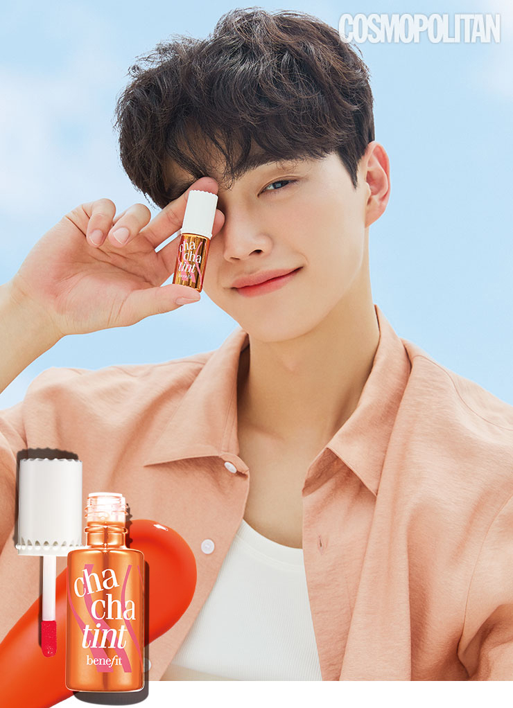 상큼 포텐 터지는 코랄색 틴트는 사계절 내내 언제 어디서든 활용하기 좋을 만큼 믿고 쓰는 아이템. 송강처럼 여름 갬성 넘치는 메이크업을 연출하고 싶을 땐 입술 전체에는 차차틴트를 바르고, 웃을 때 도드라지는 두 볼 위에는 피치색 블러셔인 베네피트 조지아를 엷게 블렌딩해볼 것.