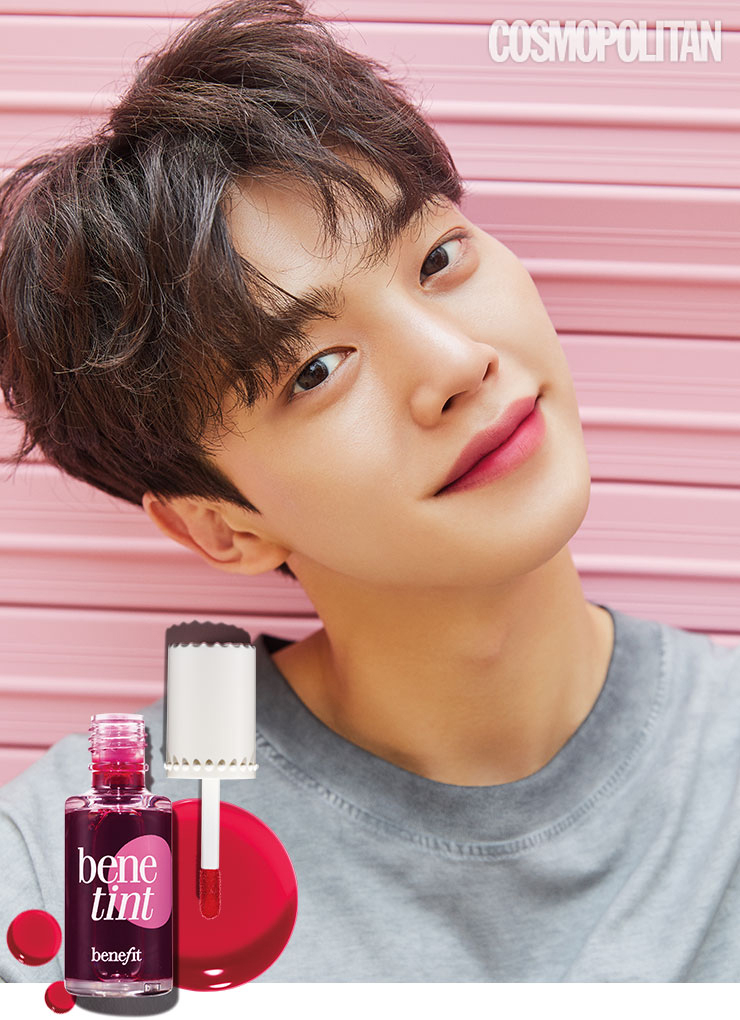 클래식 이즈 영원~. 출시된 지 무려 45년이 된 베네틴트는 엷은 장밋빛으로 입술을 물들이되 타투처럼 오랜 시간 발색이 지속돼 여전히 마니아들에게 사랑받는 중! 물처럼 가벼운 립 텍스처를 입술 전체에 얇게 여러 번 레이어링해주면 컬러가 입술에 자연스럽게 스며든다. 입술 표면을 매끈하게 연출해주는 마무리감은 송강의 도톰한 입술을 돋보이게 한다.