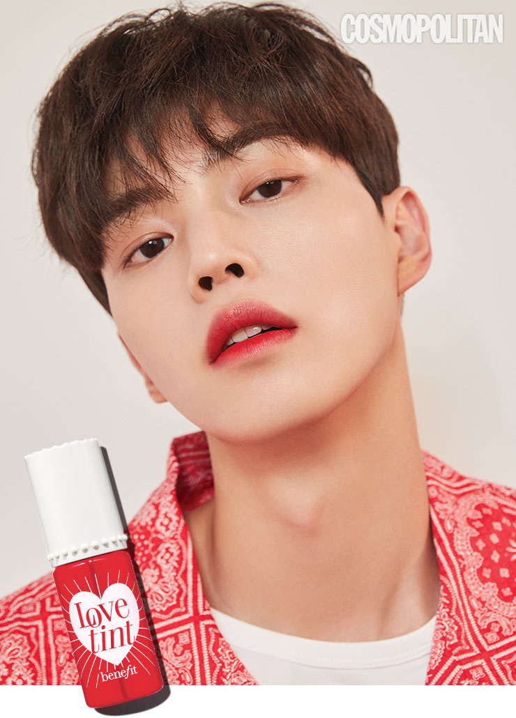 지금 당장이라도 사랑에 빠질 수 있을 만큼 얼굴이 완벽 서사 그 자체! 얼굴 가운데서도 유독 시선을 강탈하는 붉은빛 입술은 이름값을 톡톡히 하는 레드 컬러의 러브틴트가 그 비결. 입술 안쪽부터 그러데이션해 바른 뒤 광대뼈에 넓게 사선으로 베네피트 훌라를 쓸어주듯 발라 얼굴의 입체감을 강조한다.