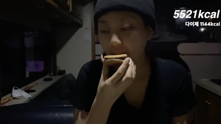 이영지는 10000칼로리를 채우기 위해 새벽 4시 고칼로리 과자계의 대명사, 다이제 초코 맛을 뜯었습니다. 다이제 초코의 칼로리는 1,114kcal, 한 조각당 88kcal를 자랑하는데요. 만 칼로리 달성을 위해 다이제 초코 맛을 아낌없이 털어 넣었습니다. 더불어 525kcal안성탄면 라면으로 마무리했죠. 새벽 4시,