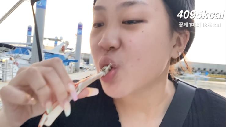 전곡항 해산물 수산센터에서 갓 잡은 싱싱한 꽃게 먹방이 바로 세 번째 코스. 노을 지는 바다를 바라보며 요트 위에서 바닷내음과 짭조름한 꽃게의 풍미를 즐겼는데요. 꽃게 한 마리의 칼로리는 188kcal로 다소 높지 않아 만 칼로리 챌린지를 채우기에 턱없이 부족했지만, 다이어트를 앞두고 있는 다이어터들이 즐기기 좋은 음식인 것 같죠?