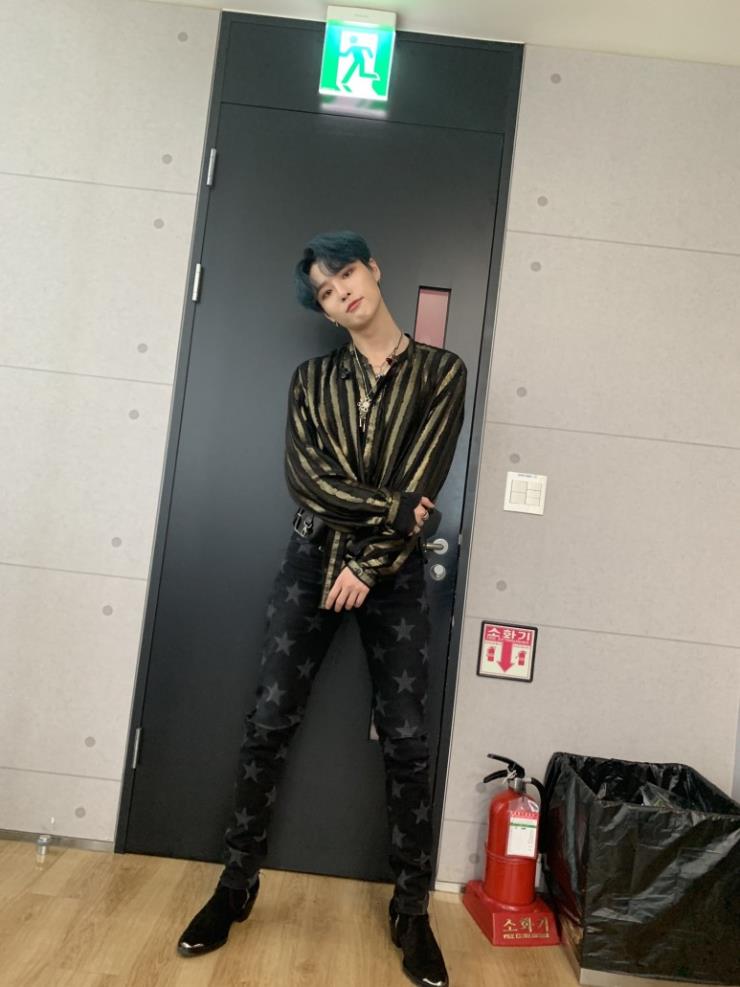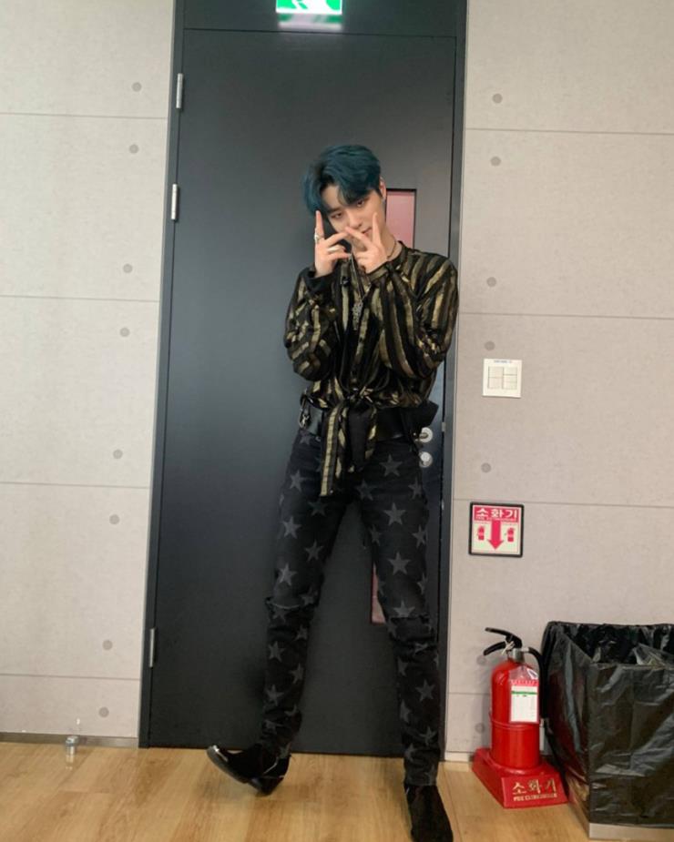 넷 중 가장 먼저 이 셔츠를 입고 나온 건 바로 우즈 조승연이었습니다! 작년 여름 음악 프로그램 무대에서 입었거든요! 별 모양이 프린트된 데님과 부츠를 함께 매치해 화려한 스타일링을 했습니다. 셔츠 앞부분을 질끈 묶어 스타일링 한 점도 센스 만점!