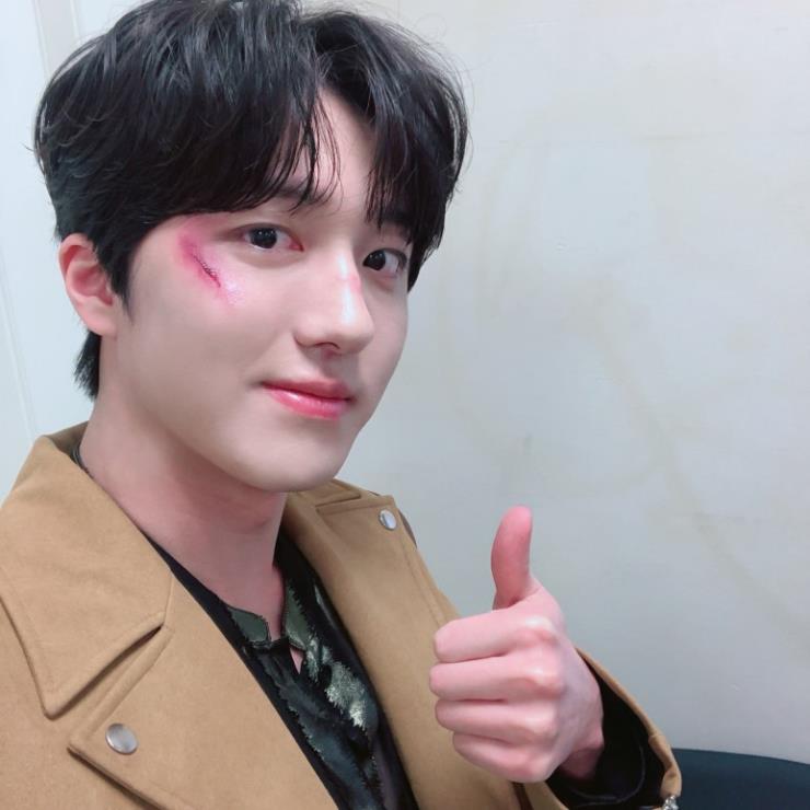 얼마 전 종영한 킹덤. SF9의 더 스틸러 무대에서 찬희가 입고 나온 셔츠도 바로 이 제품. 찬희는 셔츠의 골드 빛과 잘 어울리는 브라운 톤의 라이더 재킷을 위에 걸쳤어요. 강한 남자의 이미지를 연출했던 스틸러 무대의 느낌과 잘 어울리는 치명적인 스타일링입니다. 흉터 메이크업과도 찰떡이죠?