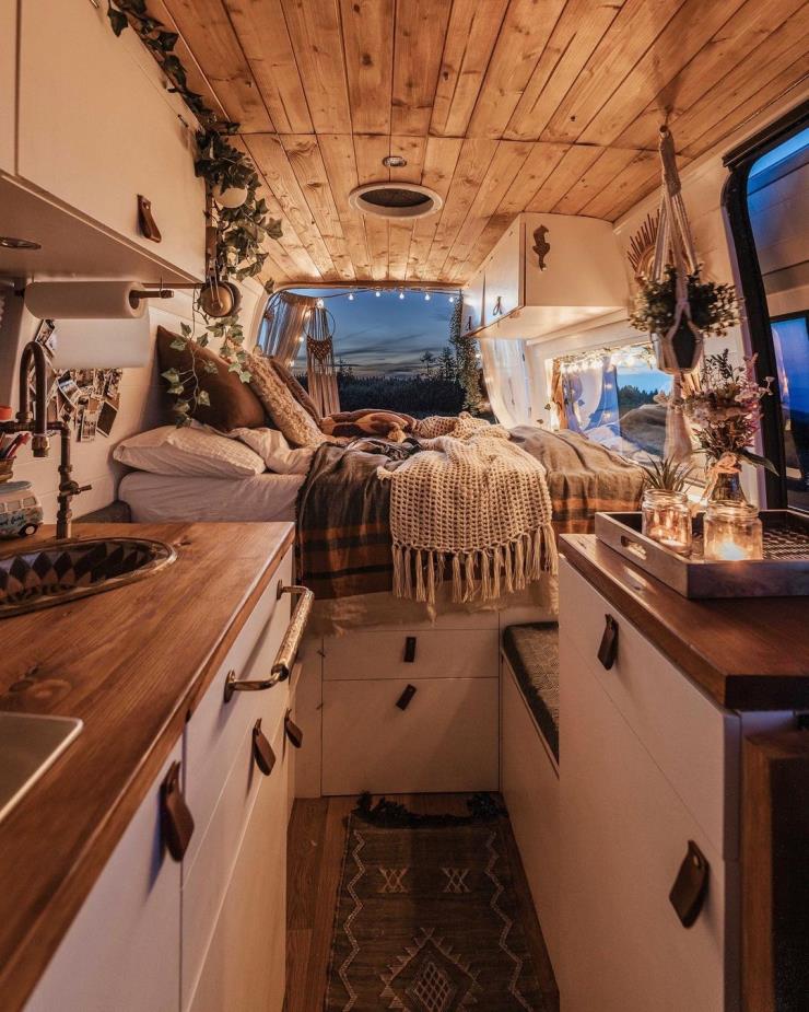 누가 개조된 이 캠핑카가 왜 제 아파트보다 더 좋은지 설명 좀 해 주실래요? 네덜란드 커플 나오미와 티보는 차량을 수리, 개조시키고 (비디오에서 볼 수 있음) 그들의 개인 스타일을 반영하는 보헤미안 분위기의 디테일로 차 안을 그들만의 개성 있는 보금자리로 탈바꿈시켰다.