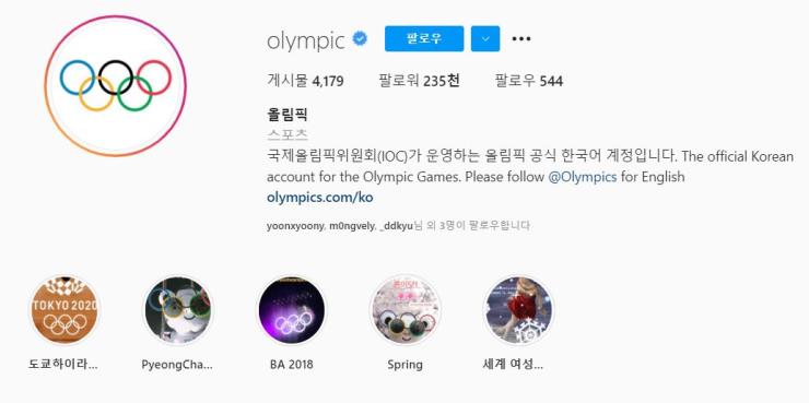 」발 빠른 한국 담당자가 ‘@olympic(올림픽)’ 인스타그램 계정을 선점해서 한국이 해당 계정 아이디를 사용할 수 있었고, 이에 어쩔 수 없이 IOC(국제올림픽위원회)는 올림픽에 ‘s’를 더한 ‘@olympics’ 라는 아이디를 사용하고 있다는 사실이 온라인상에서 화제가 되고 있다. 게다가 다른 국가들도 ‘olympic_russia’, ‘olympic.ph’, ‘olympic_india’ 등 (올림픽 + s가 아닌) 올림픽 뒤에 국가 이름을 붙여 계정을 사용하고 있기 때문에 해당 이슈가 힘을 얻고 더 빠르게 퍼지고 있는 중!