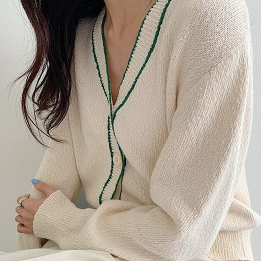 목선을 살려주어 여리 여리한 느낌을 연출하기 좋은 기본템 브이넥 카디건. 올타임 베이직 아이템이기 때문에 언제 입어도 과해 보이지 않는다. 또한 입었을 때 단정해보이는 효과도 있다.