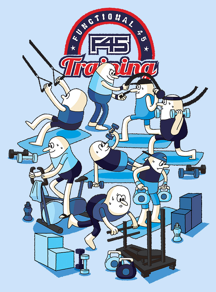 F45란 ‘Funtional 45’의 줄임말로 45분 동안 운동 효과를 극대화하는 서킷 트레이닝이다. 호주에서 시작한 피트니스 프로그램으로, 현재는 미주·싱가포르·홍콩에서도 인기다. 2700여개가 넘는 동작을 매일 다르게 구성하며, 단순히 근육을 키우는 것이 아니라 심폐지구력·민첩성·근력 등을 향상시킬 수 있는 36개 프로그램으로 이뤄져 있어 지루할 틈이 없다. 45분으로 만드는 건강함 F45